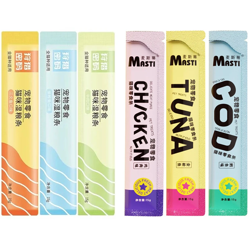 10pcs Pet Supplies Cat Strip Pet Snacks 15g/Strip Liquid Wet Grain Tuna Chicken Cod Beef Salmon Can Hair Cheep Cat Snacks