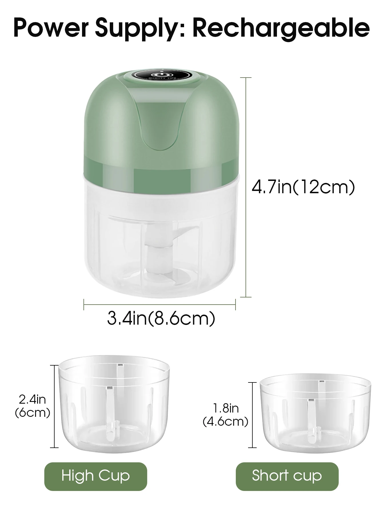 14 reviews for Electric Mini Garlic Chopper 1200mAh USB Charging Multi-Function Grinder 250ml Three-Blade Head & 100ml Two-Blade Head