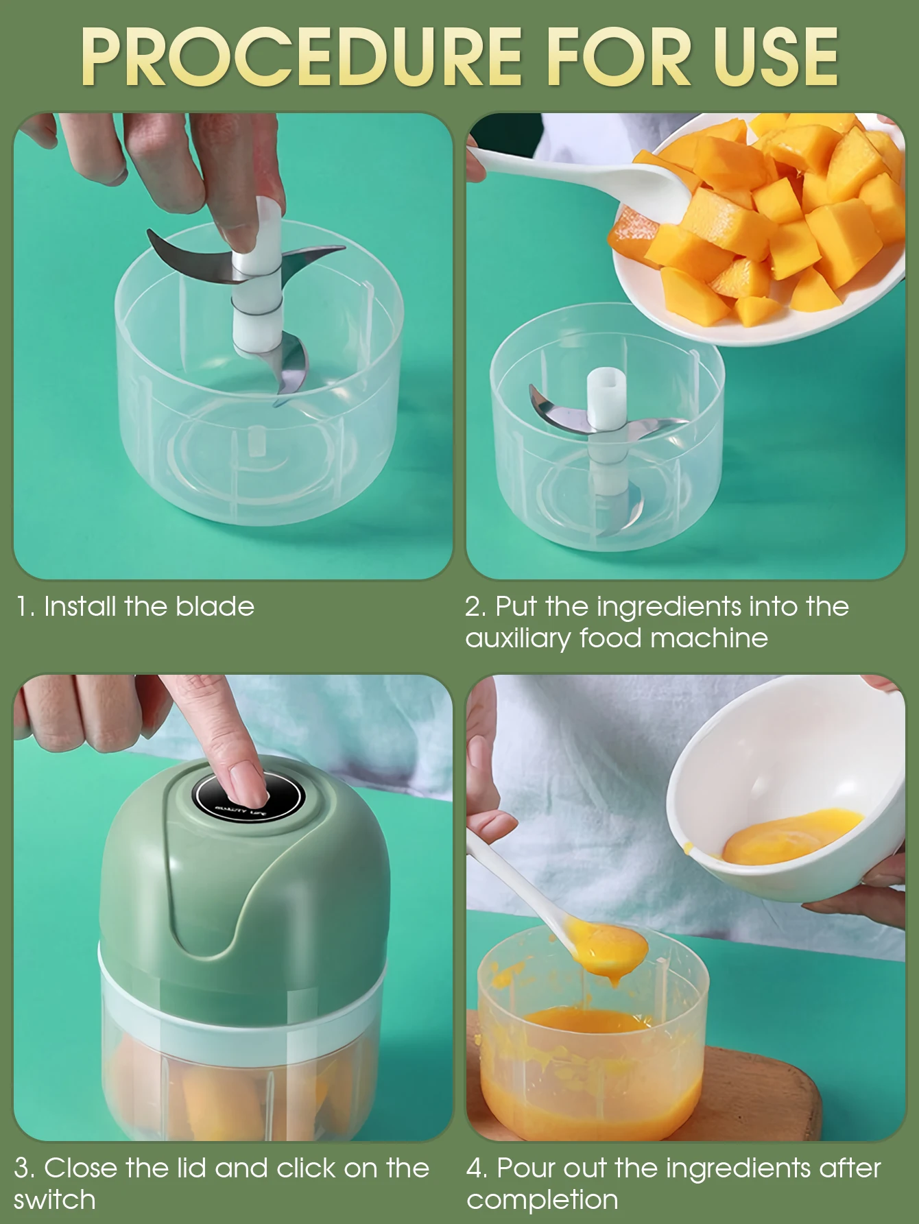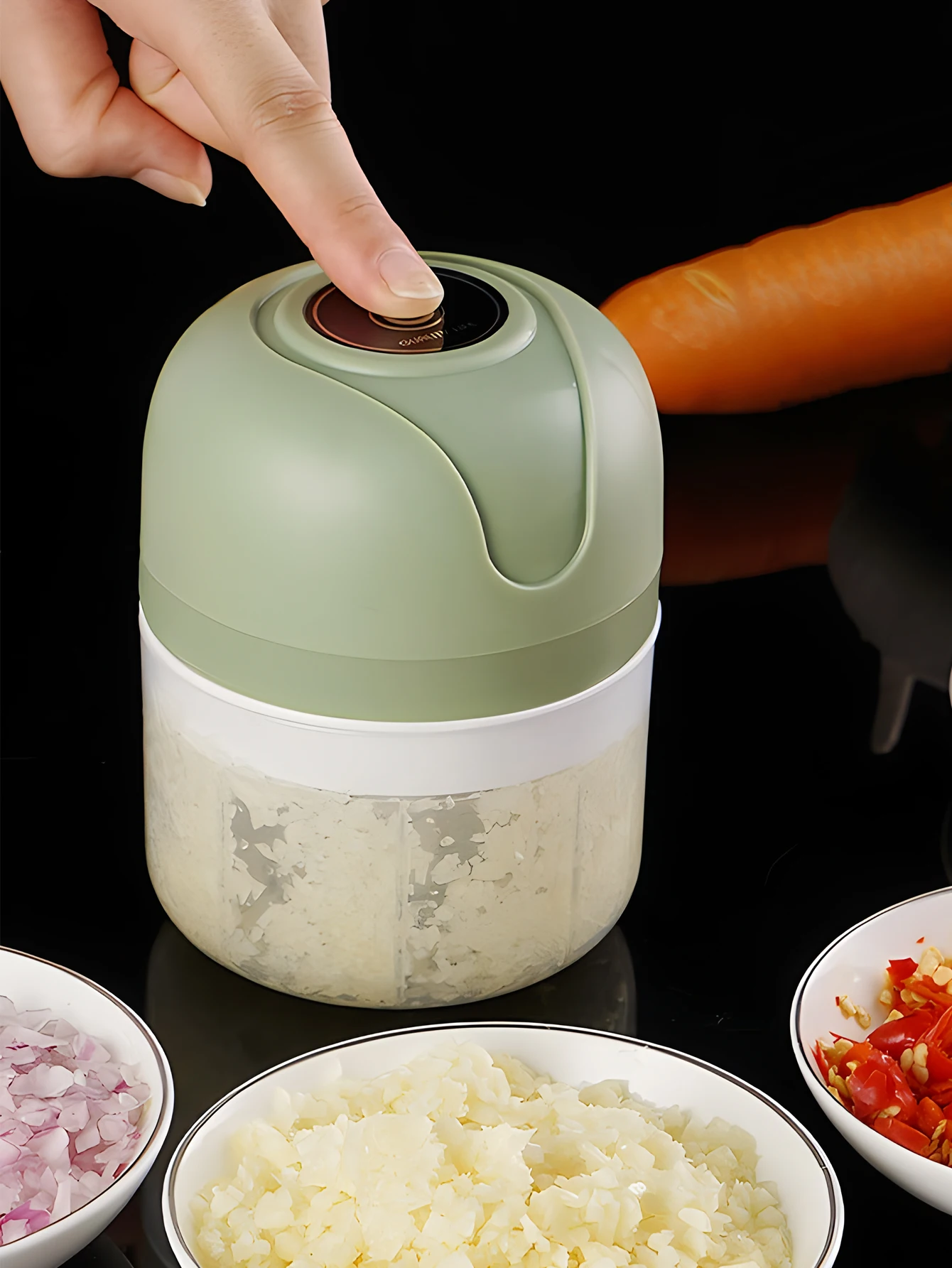 Electric Mini Garlic Chopper 1200mAh USB Charging Multi-Function Grinder 250ml Three-Blade Head & 100ml Two-Blade Head