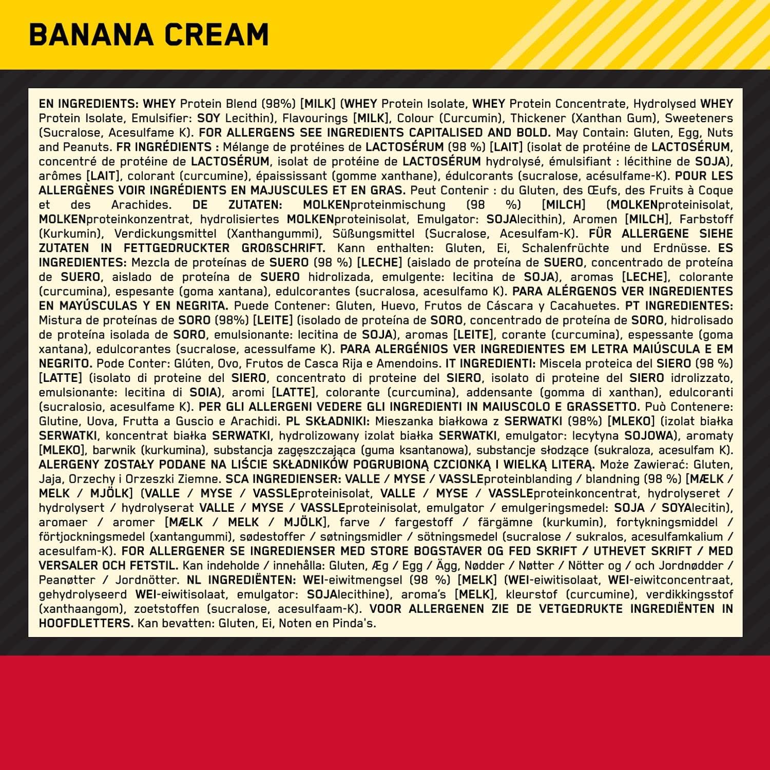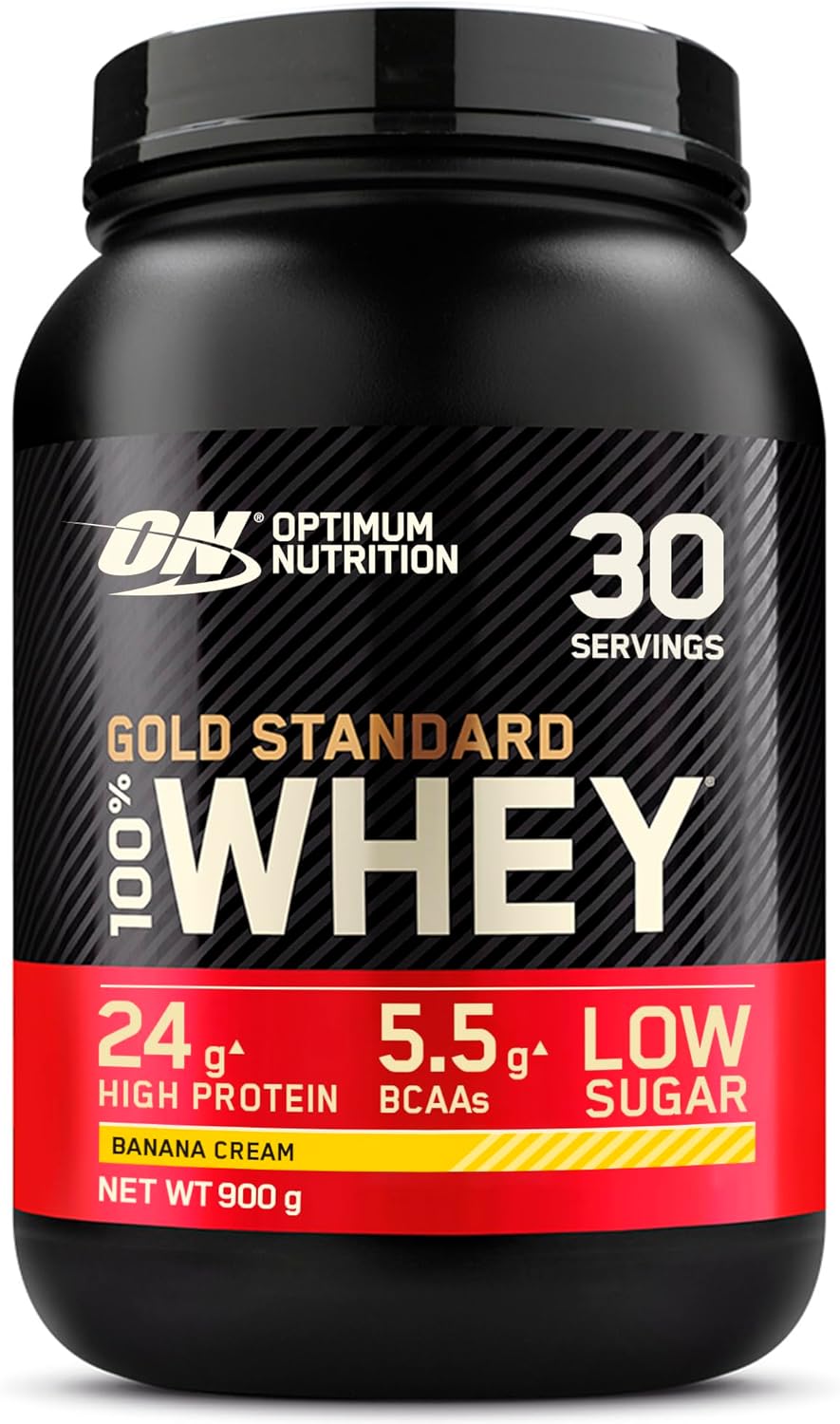 Optimum Nutrition Gold Standard 100% Whey Muscle Building and Recovery Protein Powder With Naturally Occurring Glutamine and BCAA Amino Acids, Banana Cream Flavour, 30 Servings, 900 g